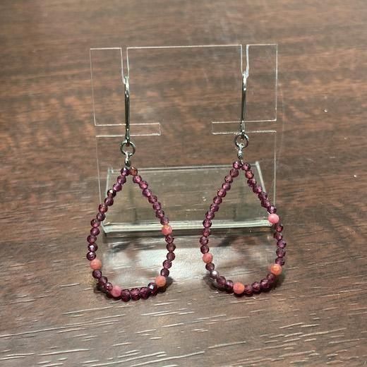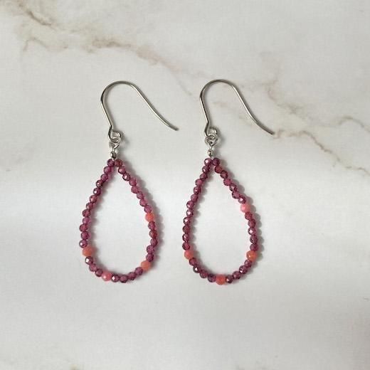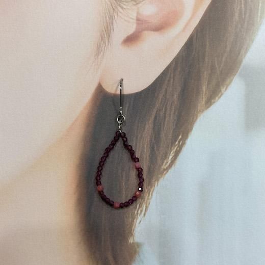 深みのあるピンクが魅力のロードナイトと、きらりと輝くガーネットを組み合わせた大人のためのピアス。