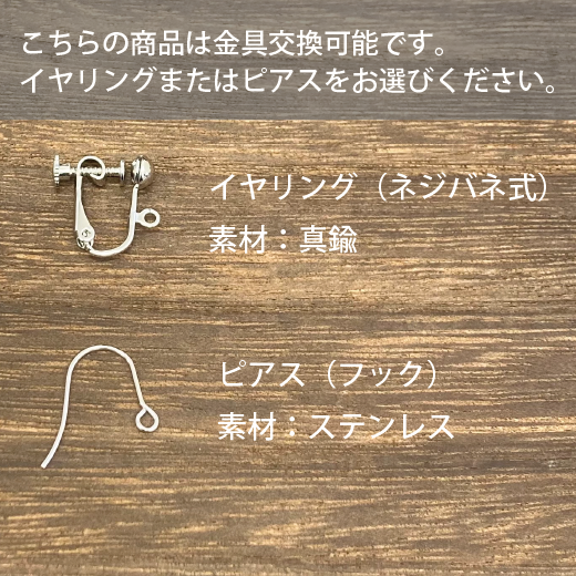 こちらの商品は金具交換可能です。ピアスまたはイヤリングをお選びください。